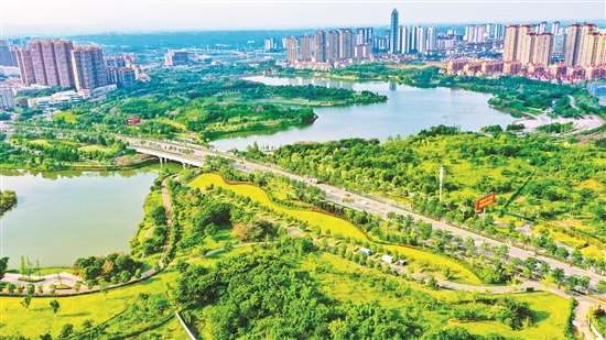 近年来,仁寿县在公园城市建设中,通过引水入城、引绿进城,还生态、水体、自然景观于民。如今,公园已成为广大市民休闲健身好去处、绿色生态体验场。