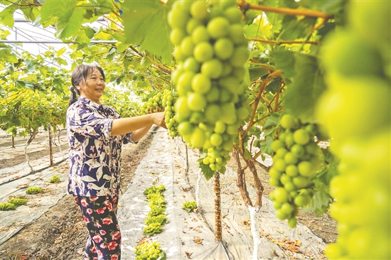 图①:葡萄丰收。翁光建 摄 图②:成熟的蓝宝石。 图③:阳光玫瑰葡萄。 图④:工人忙着将葡萄装箱。 □赵会 文/图 “我们的阳光玫瑰,味道香甜,回口有一股淡淡的玫瑰香味……”近日,彭山区公义镇葡萄种植户郑利彬正在果园里直播售卖阳光玫瑰葡萄。 “今年的销售情况还不错,批发商出的价格也可以。”说起今年的收益,郑利彬乐得合不拢嘴,“葡萄的品质好,完全不愁销。” 如今,在彭山区岷江现代农业园区的葡萄大棚里,一串串绿似碧玉、红如玛瑙、紫若水晶的葡萄,悬挂于翠绿的枝蔓间,令人垂涎欲滴。工人们穿梭其间,忙着采摘、打包、销售,处处呈现一片繁忙景象。 “近年来,彭山区以‘种中国最好葡萄’为目标,以设施葡萄为主导,标准化、设施化、机械化、精细化、智能化种植葡萄,努力打造彭山标志性特色产业。”该区农业农村局相关负责人表示。 7月24日,走在位于公义镇的彭山区岷江现代农业园区的观光道上,满目皆是白色大棚覆盖的现代葡萄园,一条条宽敞的柏油路纵横交错,路上停满了前来运载葡萄的各类货车。经过多年的发展,葡萄已经成为当地独特的优质特色农产品,是助农增收的重要产业。 “刚开始,自己摸索种葡萄,但是效果不好,后来,在村干部和周围种植大户的指导和帮助下,种植技术得到了提高,也换种了更高品质的葡萄品种。”在公义场社区2组,果农郑宝玉正忙着采摘葡萄。夫妻俩种植葡萄多年,从最初的两亩地,到现在的十多亩,每年能卖20多万元。“对我们中年人来说,这个收入已经不错了,还能照看家。”郑宝玉对现在的生活感到十分满足。 据悉,彭山区始终坚持“大园区小业主”生产模式,划定以观音街道果园村为核心的葡萄现代农业产业园区,户均30至50亩为标准引进葡萄产业业主,有效规避了种植风险,提高了种植效益。同时,积极开展产业宣传,每年举办葡萄采摘节或葡萄推荐会,向国内各葡萄经营客商宣传葡萄产业情况,通过品种引进试验、生产管理技术试验,不断推广符合市场需求的优新品种和葡萄提质增效标准化生产管理技术。 不仅如此,该区还坚持示范政策扶持,在新品种引进、钢架大棚、水肥一体化、智慧灌溉等示范方面进行奖补,有序推进产业提档升级。 近年来,该区积极参与省内外葡萄评选和学术研讨活动,选送的“无核夜美人”“白罗莎里奥”“紫甜”等11个品种获金奖,提升了葡萄产品知名度,促进了产业发展和农民增收。 “此串葡萄名为‘彭祖仙子’,颗粒饱满,外形漂亮,重量达到了4.52斤,像这种品质的果子,消费者非常喜欢……”7月23日,四川果怡农业科技有限公司相关负责人张坤指着刚刚下架的一串葡萄乐呵呵地说,近年来,彭山葡萄品质不断提升,价格年年上涨,受到外地消费者的青睐,与该区抓好产业服务、着力打造葡萄“名片”等努力是分不开的。 “彭山的葡萄品质好,品种多,今年是我第6年来这里采购葡萄了,这里的葡萄品质让人放心。”来自成都的客商李先生说,他和许多同行已经连续多年到彭山收购葡萄,每年收购葡萄在15万斤左右。 走品牌化道路,葡萄产业才能有进一步的发展。近年来,彭山区对认定为葡萄标准园的业主实行以奖代补政策给予补助,对新获得驰名商标、著名商标和知名商标的专业合作社和业主给予奖励,对新获得无公害化农产品认证、绿色食品认证、有机食品认证和地理标志认证的产品给予奖励。通过这样的点滴培育,多年下来,该区成为南方葡萄避雨栽培标杆性产区,涌现出了“果怡”等有影响力的葡萄品牌。 “截至目前,彭山葡萄现代农业园区种植优质葡萄面积3万余亩,是全国最规范的设施葡萄种植基地、南方葡萄避雨栽培标杆性产区、四川省五星级现代农业园区。”彭山区农业农村局相关负责人介绍,“彭山葡萄”获得国家地理标志产品保护,参加全国葡萄评比,先后获金奖11个、银奖1个。 近年来,彭山区坚持将脱贫攻坚与乡村振兴有效衔接,聚焦稻药、葡萄、柑橘等优势产业,着力构建“6+3”产业体系,建成农业科技示范基地3个。培育新型农业经营主体1359个,“三品一标”保有量达20个,做优葡萄等特色产业,争创省级农业科技示范园区。 |