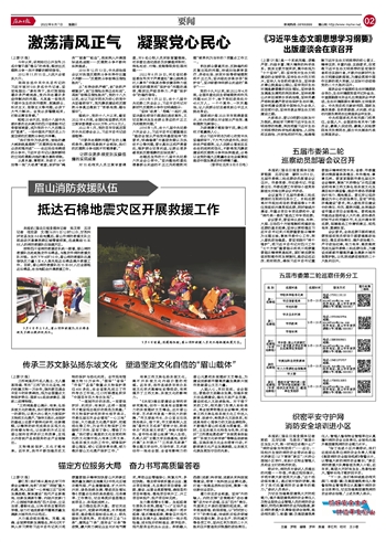 眉山消防救援队伍 抵达石棉地震灾区开展救援工作