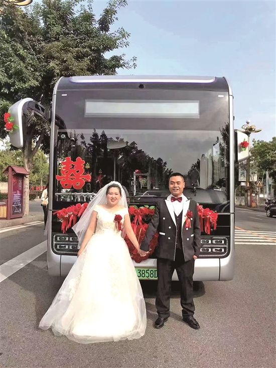 本报讯(眉山日报全媒体记者 陈文君 见习记者 杜欣谚 文/图)“欢迎乘坐14路公交车,本车开往佳偶天成、金玉良缘站……”11月5日上午,当一辆挂着花球,贴满大红“囍”字,布满鲜花、彩带的“公交婚车”行驶在眉山城区的道路上,瞬间成为一道靓丽的风景线,吸引了众多市民的目光。 原来,一对新人在结婚当天选择用公交车接亲,简约又不失喜庆,且个性十足。车辆行驶在川流不息的马路上,传播着爱情的甜蜜与芬芳,驶向幸福的彼岸。 “用公交车做婚车不仅方便,还符合国家绿色环保出行的号召,作为一名公交人,更应该从我做起,带头响应绿色出行的口号。”新郎彭艺高兴地说,能在这个特殊的日子,用公交人特有的浪漫、低碳方式踏上人生新旅程,觉得很有意义。 当天上午,两位新人搭乘上这辆“幸福专车”,亲朋好友也都聚集在宽敞的公交车里,一路欢歌笑语,仪式感和氛围感瞬间拉满。现场,不少市民驻足停留、拍照纪念,还有不少人询问如何租用公交婚车。 对此,市展通公交公司相关负责人表示,近年来,为了更好地满足市民多元化、个性化的出行需求,公司也在不断创新服务模式,开展诸如婚礼租车等方面的服务。 |