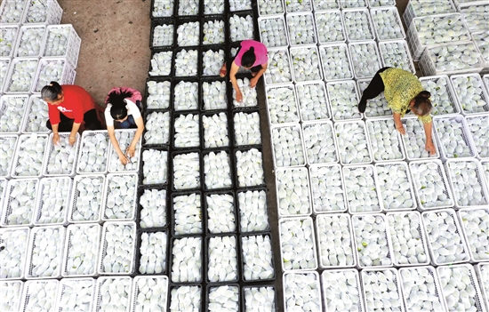 为拓宽梨销售渠道,该镇不断强化合作社的“加持”作用,改变传统的单家独户售卖方式,线上加强与阿里巴巴、京东等电商公司的合作,形成“基地+合作社+电商+农户”的灵活增收模式,线下不断加强与高端连锁超市的联系,促进群众增收致富。