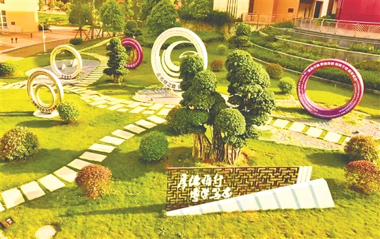 宏伟气派的标志性建筑国学馆,是学校环境文化的焦点;以学生作品装点廊道、墙面,形成融入学生认知体验、精神情感和创新精神的环境文化。“博学成才”教学区、“拼搏奋进”运动区、“修身感恩”生活区,三区分离、结构科学、布局合理、细节优化……整个校园优雅灵动、人文气息浓厚,尽显开放自由、充满活力的青春气息。