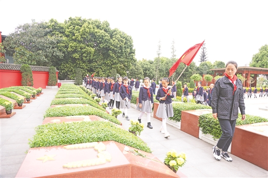 □眉山日报全媒体记者 杨鹏 周坤 文/图 为进一步缅怀革命先烈,弘扬民族精神,继承先烈遗志,在清明节来临之际,我市中小学、机关企事业单位及社会各界纷纷前往烈士陵园开展祭扫活动。 “我热爱中国共产党,热爱祖国,热爱人民,好好学习,好好锻炼,准备着为共产主义事业贡献力量……”4月3日上午,东坡区烈士陵园内庄严肃穆,柏树青翠挺拔。来自眉山师范学校附属小学和四川眉山车辆厂小学的700余名师生先后来到园内开展清明祭扫活动。 活动中,全体师生肃立在庄严的革命烈士纪念碑前,少先队员代表高举队旗,全体师生齐唱国歌和少先队队歌,歌声响彻整个陵园。随后,怀着对革命烈士无比崇敬的心情默哀一分钟、三鞠躬,少先队员代表敬献花篮、整理花篮缎带、沉痛悼念革命先烈,并重温入队誓词。最后,全体师生依次向革命烈士敬献鲜花,表达对革命先烈崇高的敬意和深切缅怀。 “少年强则中国强,通过这种爱国主义教育,同学们能够更加懂得生命的意义,同时激发他们立志勤奋读书,报效祖国的雄心壮志,增强自身的历史责任感和民族使命感。”眉山师范学校附属小学的相关负责人表示,作为新时代的教师和学生,一定要缅怀革命先烈的丰功伟绩,弘扬传承革命先烈的崇高精神,坚定不移听党话、跟党走、感党恩,顽强拼搏,担当作为,为实现中华民族伟大复兴而贡献自己的力量。 当天,除了学校开展祭扫活动外,眉山市和东坡区两级退役军人事务局的干部职工也来到东坡区烈士陵园开展“祭扫烈士陵园 缅怀革命先烈”主题活动。 丰碑寂寂凝风骨,青山郁郁寄哀思。为倡导文明祭扫新风,缅怀革命先烈,今年清明节前夕,我市退役军人事务局专门发布了“眉山市2023·崇尚·清明祭英烈倡议书”,向烈士亲属、退役军人和社会各界倡导文明祭扫、红色祭扫、安全祭扫、弘扬安全文明的烈士祭扫新风尚,同时印制、发放《文明祭扫手册》4000余份,鼓励大家通过就地祭扫、网上祭扫、错峰延时祭扫等方式寄托哀思。截至4月3日中午,全市各烈士陵园清明节前累计接待党政机关、企事业单位及社会团体2.5万余人次开展祭扫活动。 |