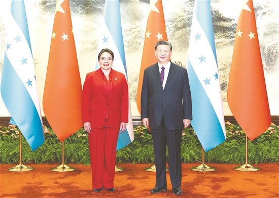 新华社北京6月12日电(记者郑明达)6月12日下午,国家主席习近平在人民大会堂同来华进行国事访问的洪都拉斯总统卡斯特罗举行会谈。 习近平指出,卡斯特罗总统是首位对中国进行国事访问的洪都拉斯总统,你的访问开启了中洪关系新的历史篇章。今年3月中国同洪都拉斯建立外交关系以来,两国关系快速起步,开局良好,呈现出蓬勃活力和广阔前景。中洪建交功在当今,利在长远。中方将坚定不移发展中洪友好关系,坚定支持洪都拉斯经济社会发展,愿同洪都拉斯做相互尊重、平等互利、共同发展的好朋友、好伙伴。我愿同你一道,从战略高度和长远角度引领和推动双边关系深入发展,把两国合作的美好愿景变为实实在在的成果,给两国人民带来更多福祉。相信在双方共同努力下,中洪关系一定会行稳致远,驶向光明未来。 习近平强调,双方要把牢正确方向,深化政治互信。一个中国原则是中洪建交和发展双边关系的首要前提和政治基础,相信洪方将不折不扣落到实处。中方坚定支持洪方为维护国家主权独立、促进发展、改善民生所作努力,支持洪方自主选择符合本国国情的发展道路,反对任何外部势力干涉洪都拉斯内政,愿同洪方加强治国理政经验交流,分享消除贫困、社会治理、惩治腐败等经验,鼓励政府、立法机构、政党、地方全方位开展交流合作。双方要加强战略对接,搭建两国合作机制的四梁八柱,以共建“一带一路”为统领,促进共同发展。中方将积极推动洪方特色产品早日进入中国市场,愿同洪方尽早开启商谈自由贸易协定进程。双方要促进人文交流,夯实中洪友好民意基础。中方愿同洪方加强多边协作,共同维护国际秩序和国际关系基本准则,加强发展中国家团结合作,维护发展中国家共同利益和国际公平正义。中方愿同包括洪都拉斯在内的拉美和加勒比国家一道,推动中国-拉共体论坛建设和中拉整体合作。 卡斯特罗表示,同中国建交是洪都拉斯政府作出的历史性抉择,必将载入史册。洪方坚定支持并遵守一个中国原则,坚定支持中国政府为实现国家统一所作的努力。在习近平主席坚强有力领导下,中国取得了伟大发展成就,洪方深感钦佩。习近平主席提出的共建“一带一路”倡议和全球发展倡议、全球安全倡议、全球文明倡议,有助于建设一个符合世界人民共同期盼的更加和平、安全的世界,洪方高度评价并将积极参与。洪方坚信,同中国发展友好合作关系,将有助于洪方获得更多、更好的发展机遇。两国建交两个多月来合作的快速进展,使洪方对未来充满信心。洪方期待同中方加强贸易、投资、基础设施、电信、能源、科技等领域合作,密切人文交流。洪方愿积极推动拉共体同中国关系发展。相信洪中友谊必将经历时间的考验,不断收获新的成就。 会谈后,两国元首共同见证签署共建“一带一路”、质检、经贸、农业、科技、文教等领域多项双边合作文件。 双方发表《中华人民共和国和洪都拉斯共和国联合声明》。 会谈前,习近平在人民大会堂东门外广场为卡斯特罗举行欢迎仪式。 卡斯特罗抵达时,礼兵列队致敬。两国元首登上检阅台,军乐团奏中洪两国国歌,天安门广场鸣放21响礼炮。卡斯特罗在习近平陪同下检阅中国人民解放军仪仗队,并观看分列式。 当晚,习近平在人民大会堂金色大厅为卡斯特罗举行欢迎宴会。 王毅、秦刚等参加上述活动。 |