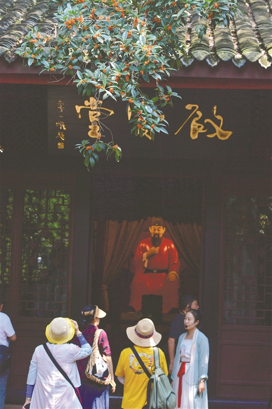 连日来,三苏祠博物馆里的桂花陆续开放,乳白色、淡黄色、橙红色的花朵簇拥在枝头,随着阵阵秋风,散发出浓郁的香味,尤其是位于启贤堂外的百年丹桂,花期正旺,让众多游客陶醉其中,流连忘返。
