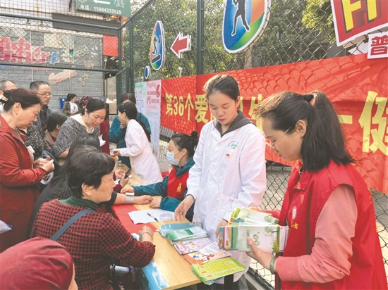 本报讯(眉山日报全媒体记者 黄馨月 文/图)今年4月是第36个爱国卫生月。为进一步弘扬奉献、友爱、互助、进步的志愿服务精神,充分发挥“橄榄绿”志愿服务队在公益志愿服务中的重要作用,4月12日,仁寿县退役军人“橄榄绿”志愿服务队联合城南社区卫生院、普宁街道江家坝社区开展了第36个爱国卫生月义诊活动。 活动现场,社区医护人员为部分退役军人和江家坝社区居民测量血压、血糖,“橄榄绿”志愿者向大家发放“健康生活方式”宣传单,讲解健康饮食观,提醒大家要合理调节饮食,保持良好生活习惯,做好慢性病、老年病防治,做到早发现早治疗。 此次活动服务退役军人、社区居民100余人次,发放健康宣教资料200余份,传播了科学的健康理念与知识,提高了大家对健康生活方式的认识和重视,为实现全民健康奠定了基础。 |