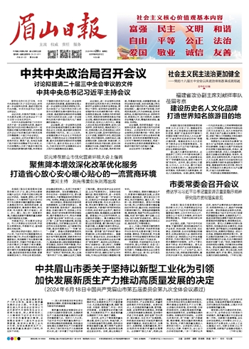 中共眉山市委关于坚持以新型工业化为引领 加快发展新质生产力推动高质量发展的决定