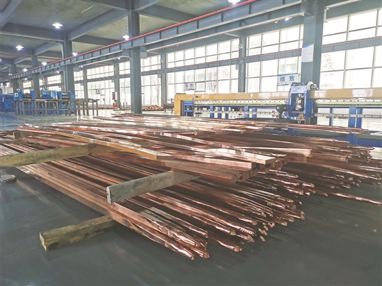 另一边,在仁寿县经开区内的四川华赐科技有限公司各生产车间,生产线上一环扣一环,工人们熟练地进行各环节生产,一个个高纯铜板、铜锭、铜杆等多种类产品被整齐地排列在成品区,等待发往下游端。
