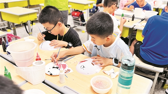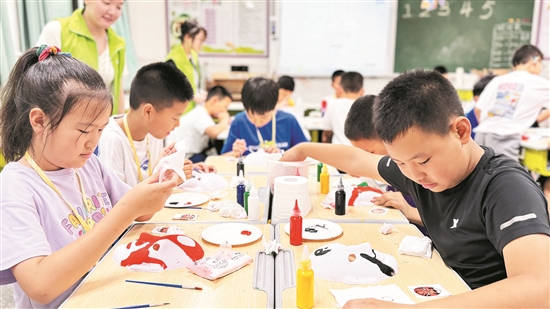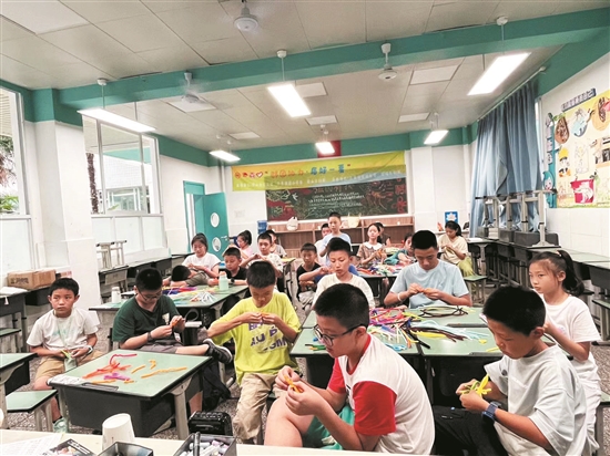 □眉山日报全媒体记者 王允浩 文/图 8月2日,由眉山市总工会、共青团眉山市委、眉山市妇联主办,共青团东坡区委员会、东坡区妇联承办的“群团协力·眉好一夏”快乐成长营暑期托管班第一期、第二期全部结束。托管班采取日常看护照顾和课外兴趣活动相结合的方式,为孩子们打造安全、健康、充实的暑期乐园。 趣味小课堂包括手工课、体育课、科普小课堂、心理课等,设置国学、阅读、书法、绘画等特色活动,满足不同年龄段孩子们的需求,丰富多彩的内容深受小朋友和家长喜爱。“自从参加了‘团伴’活动,我们双职工家庭再也不用为假期如何照顾孩子发愁了!”家长张先生说,这项活动不仅解决了他们的实际困难,更让孩子度过了一个既健康又充实的假期。 今年的“团伴”活动覆盖范围进一步扩大,含蓬莱社区、金龙社区、杭州路社区、万景清樾华庭小区以及东坡小学、眉师附小、苏洵小学、齐通小学等多个点位,确保更多孩子能够享受到这份来自社会的关爱与温暖。 据介绍,“团伴”项目旨在免费服务“双职工”、进城务工人员子女、留守儿童等,弥补在假期父母的陪伴空白。2019年至今,已开展10期活动(29个班次),累计服务980余名儿童,成为连接家庭、学校与社会的桥梁,有效弥补了双职工家庭、进城务工人员子女及留守儿童在假期中的陪伴缺失,赢得了广泛的社会赞誉。 |
