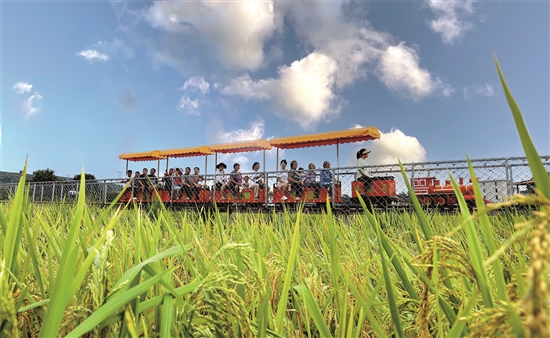 “坐在小火车上,穿梭在金灿灿的稻田中,一边是人山人海观看比赛,一边是马达轰鸣忙碌收割,方寸之间即可看丰收盛况、赏乡野美景、品乡土美食,好不惬意。”观众周琳全程参与了丰收节庆祝活动,所见所闻所感令她难忘。