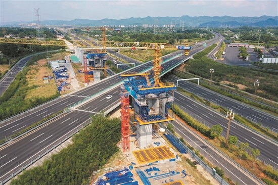 近日,在市域(郊)铁路成眉线眉山天府新区视高街道段施工现场,工人们顶着高温忙碌施工。