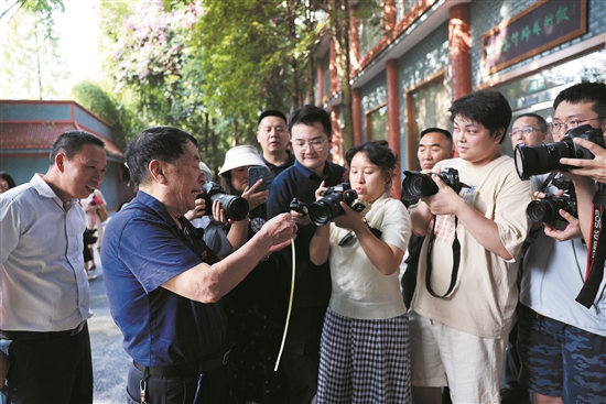 □眉山日报全媒体记者 王琴 实习生 郑怡/文 杨鹏/图 千畦细浪舞晴空,三苏古祠迎客来。9月11日,“万千气象看四川”三季度集中采访活动在我市启动。接下来一周,来自中央在川媒体和省市主流媒体将兵分三路前往四川12个城市实地探访,聚焦“巴蜀文化”主题,全面展示四川丰富的历史文化资源和深厚文化底蕴。 启动仪式结束后,当天,10余家媒体记者以我市三苏祠博物馆为起点,先后前往我市东坡区报恩寺、青神县竹里巷子、中国竹艺城等地,目光在古迹与新景之间穿梭,从古老的建筑风格到传统的民俗技艺,从文人墨客的传奇故事到民间流传的趣闻轶事,用脚步丈量着这片土地上的历史厚度,记录下眉山历史文化发展的万千气象。 以三苏祠为起点 探寻三苏文化东坡文化新内涵 三苏祠位于眉山市东坡区纱縠行,是北宋著名文学家苏洵、苏轼、苏辙三父子的故居。现为全国重点文物保护单位、国家一级博物馆、国家AAAA级旅游景区。媒体记者走进三苏祠博物馆,带着对传统文化的敬仰,穿梭在古朴的建筑间,他们采访专家学者,追寻着三苏父子的生活足迹,从一间间展室中挖掘那些被岁月沉淀的故事,用镜头与笔触记录下博物馆里的每一处细节。 对于四川国际传播中心的韩雨汐而言,博物馆里有关三苏的文化印记她都十分喜爱,不时用笔和镜头记录。“苏东坡曾入选法国《世界报》‘千年英雄’,是唯一入选的中国人。”韩雨汐说,现场参观的《中国有三苏——眉山苏氏的家国情怀》主题展在中心的海外平台报道后,反响十分好。这次想从国际观众感兴趣的角度去挖掘,以vlog的形式,实拍实得,通过所见所闻所感,在国际平台传播,将三苏的历史底蕴与文化价值更生动、更全面地展现在全球观众眼前,让不同文化背景的人们都能领略到三苏文化东坡文化的独特魅力。 三苏文化东坡文化,既是巴蜀人文的艺术结晶,也是中华文明的一座丰碑。作为眉山本地媒体人,市融媒体中心记者赵忆一直对三苏文化东坡文化情有独钟,她曾和同事们一起用“文字+图片+视频”等形式,记录了“东坡行旅——中国东坡文物主题游径”眉山区域智慧导览建设是如何在全国率先完成,见证了大型历史原创话剧《苏东坡》120场演出、音乐剧《苏东坡》巡演40余场座无虚席的盛况。接下来,她将守正创新,讲好眉山故事、四川故事,做三苏文化、中华优秀传统文化的传承者、弘扬者,用实际行动为实现现代文明与传统文化的交融创新储存贡献自己的力量。 以竹编为载体 挖掘传统历史文化独特新魅力 一路走一路看一路记。走进东坡区报恩寺,宋元时期的建筑让大家眼前一亮。单檐歇山式屋顶,抬梁式梁架,大叉手逗脊……精美的雕刻、精巧的构造、美观的造形惹得大家连连称赞。来到青神县竹里巷子,穿梭在蜿蜒的巷弄里,这里依托独有竹产业优势和特色村庄资源,成为远近闻名的乡村振兴特色示范点,让大家印象深刻。而在中国竹艺城,他们将目光聚焦于竹艺作品,亲身体验竹编技艺,与竹艺传承人亲切交流,详细了解我市竹旅融合创新发展的典型经验做法以及这些做法对当地经济、文化等多方面产生的深远影响。 “眉山历史文化悠久,三苏父子辉耀古今,长寿文化、竹编文化源远流长。”中国改革报社四川记者站记者何广丙被眉山厚重的历史文化底蕴感染,采访现场,他和同事仔细地记录下眉山的每一处独特的历史文化风景、每一个动人的历史传承发展故事,他希望通过笔触和镜头,将眉山人文之美、艺术之美以及岁月沉淀的痕迹展现给大众,让更多的人领略到这片土地的独特魅力与深厚的文化底蕴。 来自四川广播电视台全媒体新闻中心记者吴晓婧和同事,来到眉山后一直没有闲下来。他们奔走在采访一线,探寻着那些隐藏在时光深处的文化瑰宝。在她看来,文化是一个地方的灵魂所在。眉山这片土地,就像一座巨大的文化宝库,每一处角落都蕴含着先辈们的智慧与情感。来到眉山,她亲眼见到了许多关于传统文化历久弥新的故事,这些故事如同夜空中璀璨的星星,闪耀着迷人的光芒。接下来,带着那份对文化的敬畏与热爱,她将深入巴蜀大地,从古老的街巷到宁静的村落,从喧嚣的市井到肃穆的古迹,去挖掘那些熠熠生辉的文化亮点。 以笔为犁,深耕文化的沃壤;以镜头为窗,展现文化的多彩。短短一天时间,记者们每到一处都详细询问,如实记录眉山历史文化发展的清晰脉络。每一处古迹、每一段故事、每一种民俗……眉山的历史文化也在记者们的笔和镜头下清晰记录,将进一步为眉山奋力打造贯彻习近平文化思想的“眉山样板”、坚定文化自信的“眉山载体”赋予更多力量。 |