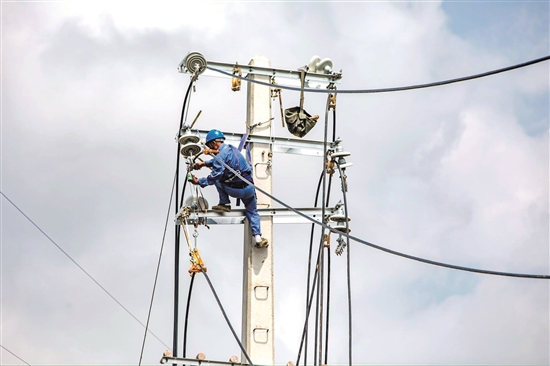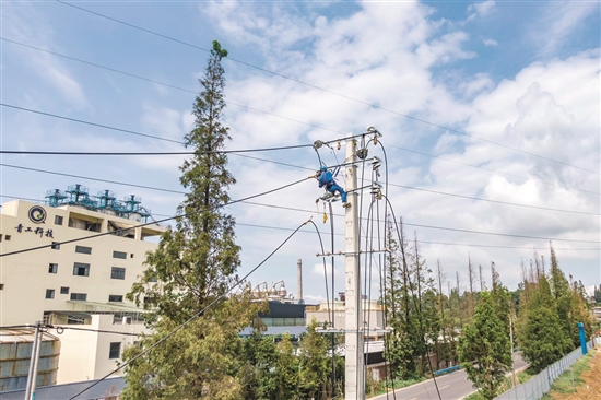 本报讯(万欣 文/图)9月10日,在眉山市洪雅县余坪镇福宝村,身着蓝色工装的电力工人正开展线路迁改工作。“今天的任务是迁改10千伏福符线和福余线15号至23号杆,为青工科技有限公司二期项目扩建‘让道’。”现场工作负责人李小辉称。 据悉,青工科技有限公司主要从事对钙芒硝矿弃物(尾矿废石)进行资源化综合处理利用,将废弃物无害处理,其产品主要为小苏打、芒硝石膏等。该公司采用电加热的方式为设备生产和运行提供蒸汽动力,实现生产清洁化和绿色化,是洪雅县生态环境保护项目,也是眉山市重点建设项目。 据李小辉介绍,10千伏福符线和福余线15号至23号杆是同杆双回,正好位于该公司扩建规划的区域,影响厂区建设。了解到情况后,国网眉山供电公司组织工作人员主动对接项目施工方,提前勘查现场,拟定线路迁改方案。 在展放导线作业点,10名电力工人在电线杆上一字排开,安装好滑轮,一边从直径1.5米的线盘放出导线,另一边利用绞磨机带动,将导线缓缓传送至每一根电杆。杆上的电力工人再用紧固器将导线紧固好。 随着迁改工作的推进,为保障线路涉及的10000余户用户正常用电,国网眉山供电公司提前一天调配2台1000千瓦中压发电车接入并网,将需要迁改的线路隔离出来进行施工。 “采用中压发电车发电能力更强、覆盖范围更大,是洪雅县首次运用,我们安排工作人员全程驻守,每间隔一小时巡视检查一次,直到迁改工作结束,保障用户对迁改工作‘零感知’。”中压发电车保电点位负责人游鹏说。 当天21时,“让道”迁改工作顺利完成。此次线路迁改共新建线路1.2公里,敷设地下电缆130米。 |