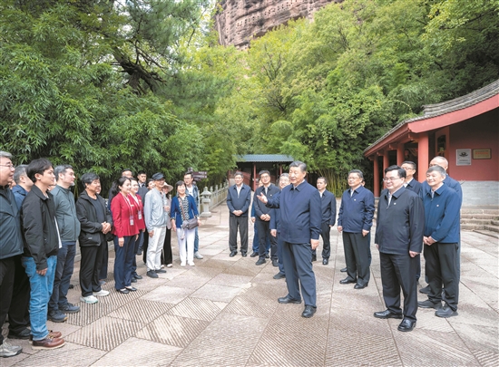 9月10日至13日,中共中央总书记、国家主席、中央军委主席习近平在甘肃考察。这是11日上午,习近平在天水市麦积山石窟考察时,同现场游客亲切交流。新华社记者 翟健岚 摄