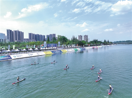 近年来,青神县立足良好的生态环境和水域优势开展系列水上运动赛事,让“水上运动天堂”成为当地的一张亮丽名片。该县成功引入并举办国家级赛事,吸引越来越多人到青神运动、旅游、度假,并形成带动效应和品牌能量,拉动文化、旅游产业升级。其中,2023全国桨板暨桨板球公开赛拉动当地旅游消费3000万元。