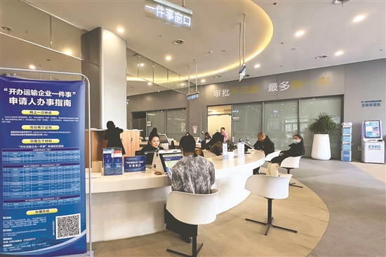 今年以来,我市以推动“高效办成一件事”为政务服务改革提档升级、优化营商环境的重要抓手,打造高效政务环境,助力企业发展“加速度”。图为在纳入全省首批“开办运输企业一件事”试点地区彭山区,该区市民服务中心为企业开展“一件事一次办”专项服务。
