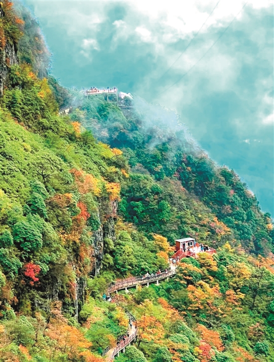 本报讯(眉山日报全媒体记者 李勇军)秋冬交替季节,正是瓦屋山彩林的最佳观赏季。连日来,前往洪雅瓦屋山徒步观赏彩林的游客络绎不绝,最近连续两个周末预定人数达景区上线。 行走于树木掩映的半山画廊可以看树影婆娑、金韵斑斓,徒步登上山顶,远眺群山可观云海浮动、彩林漫山,俨然一幅色彩鲜明的油画。而连接“半山画廊”与山顶“兰溪瀑布”的兰溪绝壁栈道,则成为了徒步爱好者必须打卡的线路。该栈道于2023年底建成,总长约1.4千米、宽1.6米,海拔落差约310米,呈“Z”字型贴90°玄武岩陡壁,被称为“瓦屋第一险”,是体验瓦屋山“雄、险、奇、秀”的最佳线路。 据了解,瓦屋山景区推出的免门票政策将持续至本月底。同时,景区还推出了瓦屋山彩林摄影大赛、小熊猫拍拍赛等摄影类活动,扩大瓦屋山知名度的同时,进一步增加游客体验感。 |