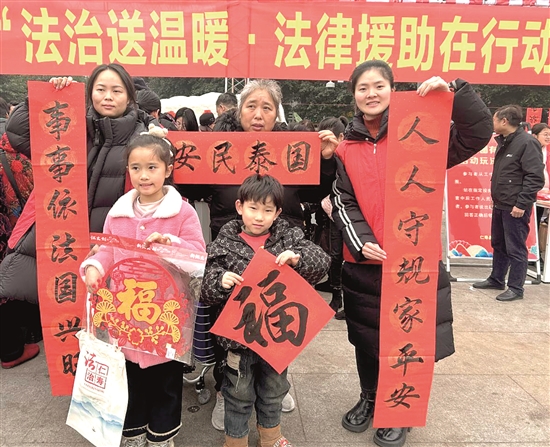 本报讯(眉山融媒记者 杜艳 文/图)“法安天下百业兴,德润人心万事顺。”为有效丰富群众的法治文化生活,扩大法律援助的覆盖面和影响力,营造浓厚的新春法治氛围,仁寿县委依法治县办、县司法局在法治文化广场积极开展“法治送温暖·法律援助在行动”普法活动,为仁寿的父老乡亲们送去了一份特殊的“法治年货”大礼。 法治春联贴向百姓心田。将法治文化与传统习俗巧妙结合,以传统文化助推法治建设,邀请书法爱好者挥毫泼墨,现场免费为群众书写法治春联。“法治迎来满园春,和顺敲开福禄门”“法治中国万象新,小康道上千家乐”等一副副蕴含法治理念的春联,为传统新春佳节增添浓浓“法治年味”,将法治理念融于春联之中,既增添了喜庆的节日氛围,也让广大群众感受到了法治文化熏陶,增强了法治宣传教育活动的实效性。 普法游戏诠释法治理念。现场开展法律援助主题法治游园会,紧紧围绕《中华人民共和国法律援助法》《四川省法律援助条例》设置三大特色游戏区域:“转转知法”“圈圈有法”“灯谜解法”,将法律知识融入小游戏中,用生动活泼的方式“零距离”普法,吸引居民群众主动参与,让大家在轻松愉快的氛围中学习法律知识,感受法治的力量和温度,让法治文化深入人心,实现法治宣传由“单向输出”转变为“双向奔赴”。 法律服务送到群众身边。县法律援助中心、县退役军人事务局、县妇联以及县农民工服务中心在活动现场设立法律咨询服务台,安排律师现场解答群众最关切的劳动合同履行、工资报酬支付、劳动争议处理等法律热点问题,同时重点介绍了如何申请法律援助、合法维权的途径和方式。活动现场发放了《中华人民共和国民法典》《中华人民共和国法律援助法》《中华人民共和国公证法》等涉及民生实事等方面的宣传资料,引导群众树立办事依法、遇事找法、解决问题用法、化解矛盾靠法的法治意识,帮助他们运用法律知识解决实际问题。本次活动,共发放宣传资料600余份,宣传品500余份,现场解答法律咨询15人次。 |