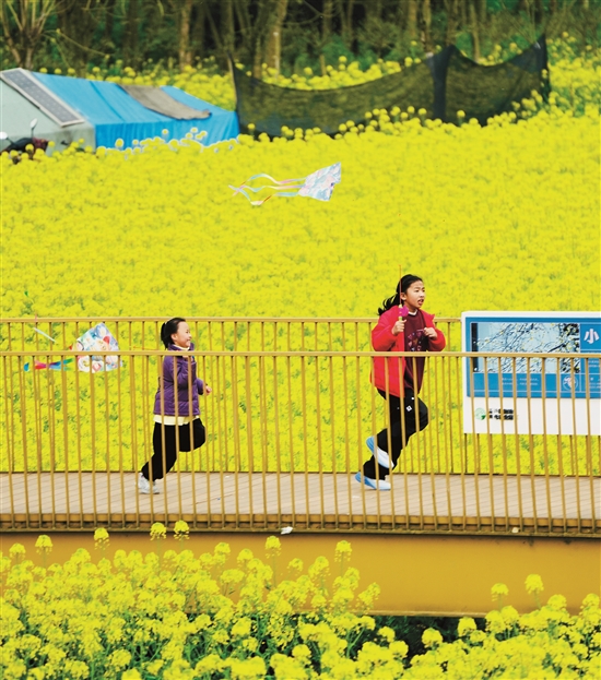 □眉山融媒记者 古良驹 文/图 岷江春水潺潺流淌,万亩油菜花铺就金色画卷。近期青神县抢抓油菜花观赏季,在高标准建设的天府良田上,创新性打造“花经济”,走农旅融合新路,再添消费新场景。 “今年的油菜花节,大家都说体验好。”3月9日,青竹街道新光村党委书记刘玉祥告诉记者。 2月26日至3月9日,以“有才华,有财花”为主题的竹里稻香春日油菜花节在这片充满诗意的土地上热闹举办,宛如一场自然与人文交织的绮梦,让每一位游客都沉醉在这缤纷的春日时光里。 踏入竹里稻香,便能感受到那扑面而来的春日气息。在“金色花海·春日音浪”油菜花音乐派对上,流行与民谣交织,乐队的激情演奏让花海都随之共振。音符在金色的花海上空跳跃,和着微风,仿佛是春天奏响的最美乐章,让游客们沉浸在这音乐与自然完美融合的氛围中,身心都得到了极大的放松。 而“花田霓裳·古韵流芳”古风舞蹈表演,则为这场盛会增添了一抹古韵。舞者们身着华丽的汉服,在花海间翩翩起舞。那灵动的身姿,飘逸的水袖,宛如从千年画卷中走来,与金色花海相互映衬,展现出古典美学的独特魅力,让人们仿佛穿越时空,邂逅了一场花田风华。 丰富多彩的体验活动,更是让游客们参与感十足。“花海争锋,力拔山河”趣味拔河比赛中,游客们在花田间展开了一场力量与团队协作的较量;“花田彩绘·亲子涂鸦派对”上,家长和孩子们一同拿起画笔,在20米长卷上尽情挥洒创意,用色彩描绘春天的美好;“花田趣玩·蜜蜂采蜜大作战”里,捕捉者化身“小蜜蜂”,被捕捉者扮成“鲜花”,在1小时的采“蜜”比拼中收获欢乐与奖励;“金色宝藏·花田探秘”则充满了神秘与挑战,游客扫码获取电子藏宝图后,开启一场脑力与体力的双重冒险;“金色花海·镜遇春天”活动邀请了专业摄影协会的摄影师们,捕捉花海的每一处美景……现场还有财神爷、蜜蜂、蝴蝶等“NPC”加持,为这场游戏增添了不少趣味和惊喜。 逛累了,游客们还能在春日集市里大饱口福、尽情玩乐。青神特色小吃,如土法爆米花、糯米蛋、糖画、腊肉、香肠等,散发着诱人的香气,满足游客们的味蕾。蜂蜜柚子茶、油菜花蛋糕等DIY美食,让游客们在品尝美味的同时,还能体验动手的乐趣。集市上的非遗手作、油菜花DIY手作、手工风筝、手工香皂等琳琅满目,游客们可以挑选心仪的小物件,把油菜花和春天的美好回忆带回家。 这场油菜花节,是一场自然与人文的盛宴,是一次心灵与春天的对话。它让人们在繁忙的生活中寻得一处宁静的角落,沉浸在金色花海的浪漫与欢乐里,感受着春天的无限魅力。 “不仅是新光村,光辉村等地的油菜花已经陆续开放,欢迎大家到青神县共赴这场春日金色之约。”青神县文广旅局相关负责人向大家发出邀请。 “花经济”绽放的背后,是青神县坚持农业特色发展,稳步推进更高水平“天府粮仓”建设的努力。 2024年,青神县加快建设新时代更高水平“天府粮仓”特色示范区,新改建高标准农田2.7万亩,建成2个水稻千亩高产展示片,粮食播种面积达14.1万亩、产量6.5万吨,单产提高2.8公斤;青竹粮油园区成功创建省三星级现代农业园区。与此同时,深入推进“五美乡村”,投入3950万元,启动建设新光村等8个宜居宜业和美乡村;深入实施农村人居环境整治提升行动,因地制宜推进农村改厕,生活污水、垃圾有效处理的村达100%。 “今年,我们将推进‘天府粮仓’特色示范区建设攻坚、和美乡村建设攻坚。”青神县相关负责人表示,2025年将实施高标准农田、农旅融合等“天府粮仓”特色示范区建设攻坚项目15个,建成8个和美乡村、2个市级精品村,描绘一幅更加多彩的“良田美景”。 |