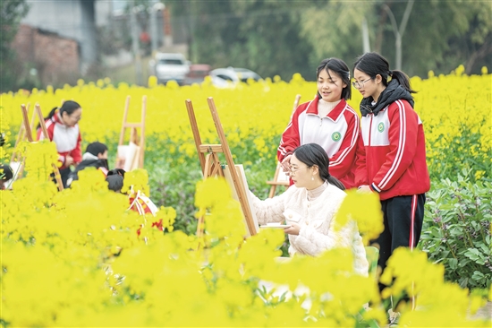 3月10日,眉山天府新区一学校美术社团20余名师生来到眉山天府新区贵平镇油菜花基地,开展了一场春天户外写生活动,用画笔描绘家乡美丽的春色,感受春天的蓬勃生机。