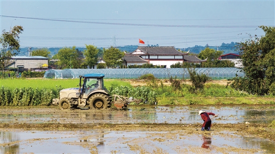 春潮涌动农事忙,机械轰鸣备耕勤。4月2日,东坡区思蒙镇宋堰村的千亩良田里,村民们正驾驶旋耕机、插秧机在田间穿梭作业,翻整后的沃土上渐次铺展嫩绿秧苗。作为全区春耕重点区域,思蒙镇今年采取“早部署、早行动、早见效”工作法,通过农技指导到田、农机检修到户、农资配送到村等措施,保障宋堰村2800亩高标准农田春耕生产。