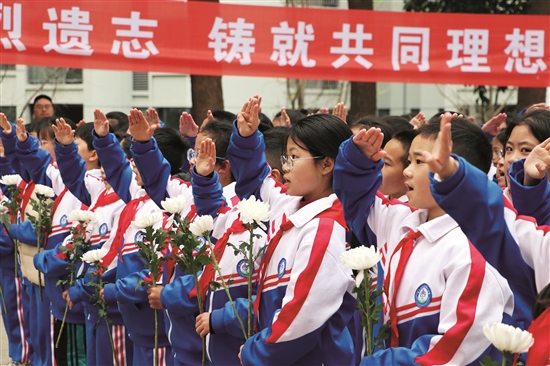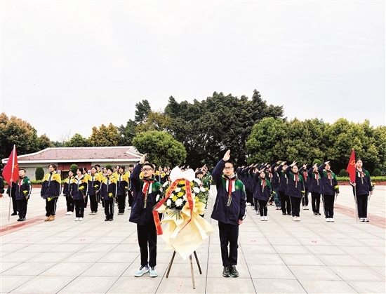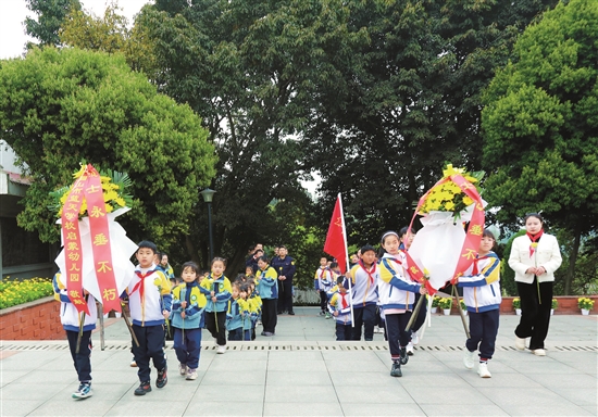 清明是一个慎终追远、祭奠先烈、传承红色基因的庄严节日,也是一个弘扬传统文化,感受文化内涵的传统节日。 临近清明节,全市各个学校组织开展了丰富多样的活动,将清明文化转化为生动的德育资源,让传统节日成为培根铸魂、启智增慧的精神沃土。 □万凤英 眉山融媒记者 王琴 陈文君 大手牵小手 童心祭英烈 本报讯(何媛 文/图)“桃花红雨英雄血,碧海丹霞志士心。”3月31日,眉山映天学校四年级的学生携手蓝天幼儿园的小朋友们,共赴烈士陵园,开展了一场别开生面的“大手牵小手”清明祭扫活动。 霏霏细雨中,身着校服、佩戴红领巾的映天学子与稚气未脱的幼儿园小朋友整齐列队,踏入肃穆的烈士陵园。苍松翠柏间,“人民英雄永垂不朽”的纪念碑巍然矗立,仿佛在无声诉说着那段峥嵘岁月。 师生代表在纪念碑前敬献了满载哀思的花篮,老师为学子们讲述了英雄故事,学子们轻抚墓碑,阅读先烈事迹,自发鞠躬致敬……这场“大手牵小手”的祭扫活动,不只是一种仪式,更是一场跨越代际的精神启蒙,让红色火炬在稚嫩掌心传递。 青山埋忠骨 红心铸未来 本报讯(周丛山 文/图)清明节即将来临之际,4月1日,眉山东辰学校结合三爱教育与感恩教育,利用清明节契机,举行了“青山埋忠骨·红心铸未来”眉山东辰大队委员会与团支部清明烈士陵园祭英烈实践活动,通过活动,教育青少年慎远追怀、缅怀先辈,牢记革命先烈的光荣事迹,了解红色故事,传承红色基因,为实现中华民族伟大复兴的中国梦而努力学习、成长成材。 清明祭先烈 共铸中华魂 本报讯(何瑶/文 骆莉/图)松柏苍翠寄哀思,丰碑永驻颂英魂。为深切缅怀先烈,传承红色基因,厚植爱国情怀,3月31日下午,彭山一小五年级全体师生前往彭山区烈士陵园,开展了主题为“清明祭先烈,共铸中华魂”的清明祭扫活动。 此次活动,让师生们在追思中获得精神滋养,于传承中践行使命担当,该校也将继续秉承红色教育传统,深化育人工程,确保革命精神永续传承。 |