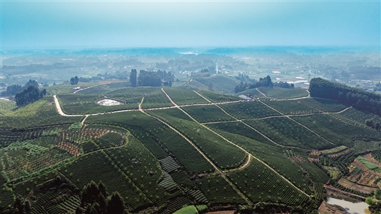 4月7日,东坡区思蒙镇工农村黄金茶产业基地内,3000亩茶树新芽初绽,上千名采茶工穿梭其间,抢收今年黄金茶头芽。