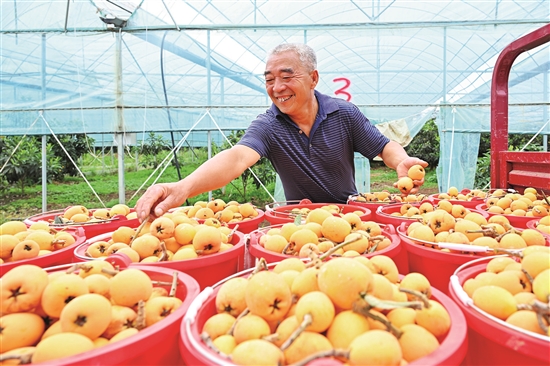 连日来,仁寿县文宫镇的大棚枇杷喜获丰收,抢“鲜”上市。近年来,当地大力发展现代设施农业,推广大棚枇杷种植技术,提高枇杷品质和产量,助力群众增收致富。
