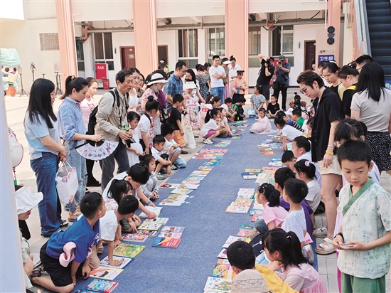 “世界读书日”活动中,景贤小学学生们积极参与图书漂流,让闲置的书籍相互间“流通”,把知识传递下去。小朋友们把自己精心挑选的闲置书籍摆放整齐开始“吆喝”,这些书籍有文学名著、科普读物、儿童绘本等,每一本都承载着孩子们的阅读记忆与成长故事。在现场,孩子们进行交流、互换,分享着书籍的内容和自己的阅读感受,气氛温馨而融洽。