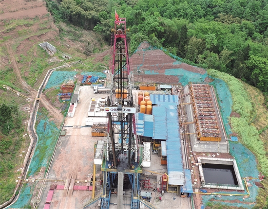 4月21日下午4点,记者在位于丹棱县顺龙乡的大深3井天然气井钻探项目现场看到,伴随着钻井顶驱不断转动,钻杆底部的钻头也离天然气越来越近。
