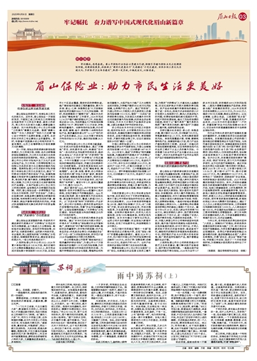 牢记嘱托,感恩奋进。眉山市保险行业协会以党建为引领,持续引导辖内保险业充分发挥保险职能,创新保险服务,积极助力“新时代更高水平‘天府粮仓’示范区建设、传承弘扬三苏文化东坡文化、乡村医疗卫生体系建设”,取得一定实效,今编发该文,以飨读者。