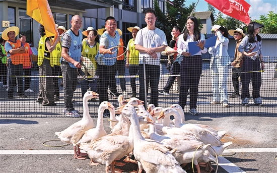 近日,在仁寿县“农耕喜乐会”现场,村民们通过农耕趣味竞赛活动,在欢声笑语中分享丰收的喜悦。 眉山融媒记者 郭侨 摄