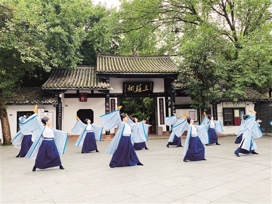 本报讯(眉山融媒记者 张丹梅 文/图)10月1日,眉山三苏祠处处洋溢着喜庆祥和的节日氛围。当天,东坡区心连心艺术团在此开展“强国复兴有我”主题快闪活动,用独特的文化演绎方式,为祖国庆生,也让现场观众沉浸式感受东坡文化的魅力与家国情怀的共鸣。 “我爱你中国,亲爱的母亲……”上午9时,熟悉且充满深情的旋律,像磁石一般,吸引着路过市民和游客的目光,大家纷纷停下脚步,或驻足聆听,或拿出手机记录温馨又振奋的场景,嘴里还不自觉地哼唱,现场氛围瞬间被推向高潮。 此次快闪活动中,艺术团带来的《进士出眉州》节目更是成为一大亮点。演员们身着宋代服饰,衣袂飘飘间尽显雅致韵味。通过细腻的表演,苏门一家深厚的家国情怀以及充满诗意的生活雅趣也展现得淋漓尽致,让市民游客深深沉醉其中,不时发出阵阵赞叹。来自成都的游客徐丽莎眼眶微红:“太有代入感了!演员们的眼神、动作都像把我拉回了那个文人辈出的年代,突然就懂了东坡先生笔下的家国情怀,这种方式很生动。”游客王杰一边给孩子讲解歌词里的典故,一边感慨:“平时带孩子来三苏祠是看文物,今天看了表演,孩子主动问我苏轼的故事,这种沉浸式体验对传承传统文化太有意义了!” “我们希望通过快闪的演绎形式,让东坡文化以更鲜活、更贴近大众的方式呈现出来,让更多人了解东坡文化、喜爱东坡文化,进而传承和弘扬中华优秀传统文化。”东坡区心连心艺术团团长陈惠莘表示,《进士出眉州》这一特色节目是首次亮相,节日期间还陆续在东坡宴等景区、商圈进行了演出,进一步丰富景区、商圈文化内涵,提升游客的游览体验,让更多人在游览中感受东坡文化的独特魅力,激发大家的文化自信与爱国情怀。 |