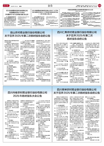 四川丹棱农村商业银行股份有限公司 2025年临时股东大会公告