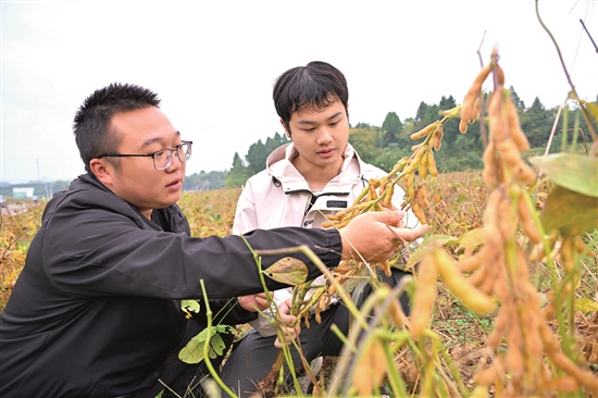 □潘帅 眉山融媒记者 郭侨 文/图 “一亩地能增加500元的收入。”近日,在仁寿县现代农业产业园区,种粮大户李棚看着地里的大豆,盘算着如何收割,让粮食颗粒归仓。“大豆玉米带状复合种植每亩地能收1200斤玉米,加上近380斤大豆,这个效益让种粮的积极性更高了。”李棚脸上满是笑意。 一年之中开心事,喜看丰收粮满仓!初冬时节,仁寿县田间地头,金黄豆穗缀满枝头,测产数据再创新高,万顷田畴尽是丰收图景。 11月19日,四川农业大学的技术团队在仁寿县现代农业产业园区进行现场测产。专家组严格按照《农业农村部大豆高产创建验收办法》的实收测产办法,选取产量最高的地块,经机械收获籽粒、过磅称重,测定大豆籽粒鲜重和测定大豆籽粒水分含量。 作为全国最早推广大豆玉米带状复合种植技术的地区之一,仁寿县的探索要追溯到2007年。 当时,四川农业大学杨文钰教授团队带着“以豆养地、缓解粮豆争地矛盾”的探索初心,在仁寿县现代农业产业园区建起100亩试验田与5000亩示范田,开启了技术攻坚之路。不同于“一行玉米一行豆”的传统套作,团队扎根田间反复试验,最终创建“两协同一调控”理论,形成以“选配品种、扩间增光、缩株保密”为核心的技术体系——通过科学配置3∶2和2∶2带状行比,让高位玉米充分发挥边行优势,低位大豆获得充足受光空间,既保证玉米亩产与净作相当,又能多收150至190公斤大豆,实现“玉米不减产、多收一季豆”的突破。 值得一提的是,大豆玉米“合伙”种,不仅增产增收不增地,还提升了经济、社会效益。专家团队不仅攻克了分带变量喷雾、低位仿形割台等关键技术,还研制了轻简高效的播种、施肥、植保、收获等机具,填补了间套作无配套农机具的空白,实现了带状复合种植全程机械化。 “现在种粮已不是‘面朝黄土背朝天’的老样子了,播种、喷药、施肥、收割全是机械化操作,省心又高效。”李棚站在田埂上,语气里满是自豪。 这位曾经在城市里打拼的物流从业者,2019年毅然回到家乡仁寿县,转型成为一名新型职业农民,如今打理着2000亩土地。 回忆起转型之路,李棚坦言,曾面临不少挑战,但专家团队的实时讲解与培训成了他的“制胜法宝”。“土壤肥料、病虫害防治、农产品质量安全等各类培训课程,不管是政策解读还是技术干货,随时都能请教他们。”从种植、追肥、安排人工除草,到如今看着大豆喜获丰收,每个时节该做什么、怎么做,李棚早已熟稔于心。 在园区一角,几辆满载大豆的运输车正准备前往烘干中心。“收割、烘干、仓储一条龙服务,也不用愁粮食晾晒和储存的问题。”李棚介绍,完善的配套服务让劳动成果能稳稳落袋。 而大豆玉米带状复合种植的探索并未止步于此,从技术迭代到品种升级,从模式创新到产业延伸,仁寿县正以“永不止步”的劲头,让田垄间的科技红利持续释放。 在另一边的试验田里,四川农业大学研究生周成希和同学正专注地对新引进培育的1000多个大豆品种开展考种工作。 “我们通过系统测量这些品种的种植密度、性状、结实率及实际产量等关键指标,精准筛选出适配本地土壤条件、抗逆性强的优良大豆品系,为后续开展定向选育、培育更具推广价值的新品种打下基础。”周成希一边记录数据,一边介绍。 技术的深耕离不开人才的支撑。据了解,仁寿县与四川农业大学共同建立博士工作站,汇聚30余名高级专家教授、10余名博士及20余名研究生组建攻坚团队,以“实验室+试验田”联动模式和“农业园区+农业农村局+四川农业大学+种植户”四方联动机制为核心,实现技术研发与田间应用的无缝衔接。 如今的仁寿县,不仅成为全国大豆玉米带状复合种植技术的孵化基地,更承办了全国性行业交流会,让丘区农业的创新经验走向全国。从最初的100亩试验田到如今的25万亩推广面积,该县用多年的坚守,让“一地双收”的成功实践,不仅充盈了农民的粮袋,更筑牢了“天府粮仓”的根基,为保障国家粮食安全提供了可复制、可推广的实践样本。 |